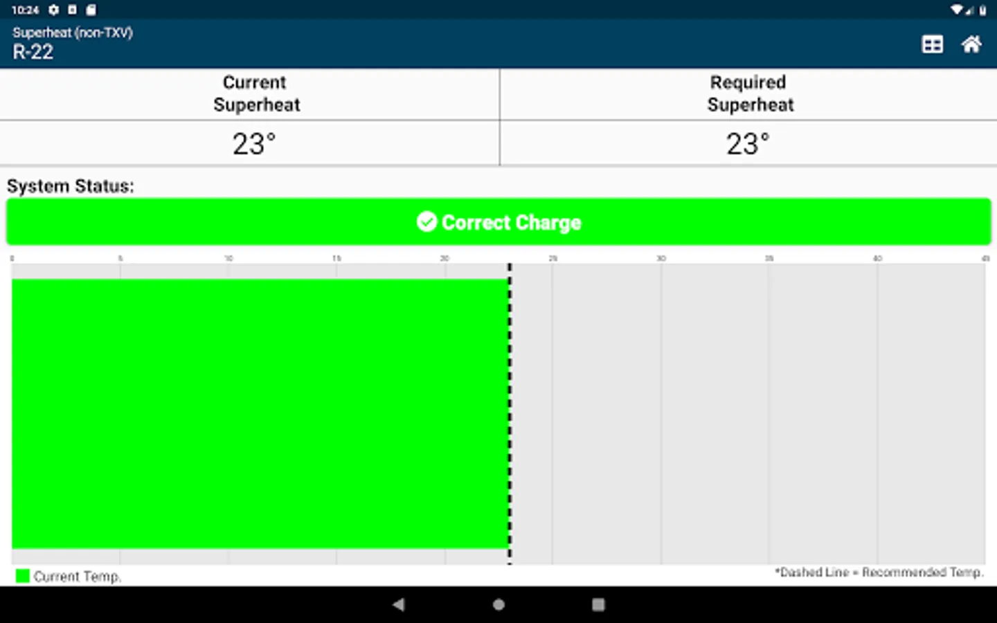 The HVACR Check & Charge™ mobile app from Emerson Climate Technologies provides an on-site refrigerant charge calculator for air conditioning and refrigeration applications. Based on historic sliding cardboard charge calculators, this app allows contractors to easily calculate the correct system refrigerant charge for R-22, R-410A, R-32, R-407C, R-134a, R-452B, R-454B, R-438A, R-422B, R-427A, R-421A, R-404A, R-290, R-449A, R-448A, and R-407A. Contractors can simply choose Superheat, Subcooling, or Airflow and enter the specified system temperatures along with the latent and sensible environmental loads. These values are then used to determine the proper system charge and whether the charge amount needs to be altered based on these conditions.