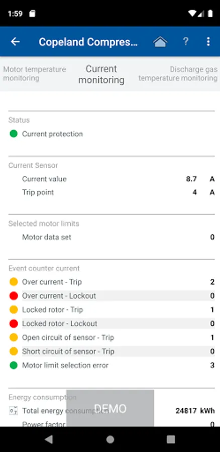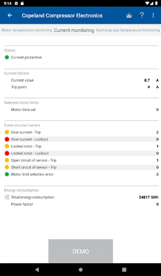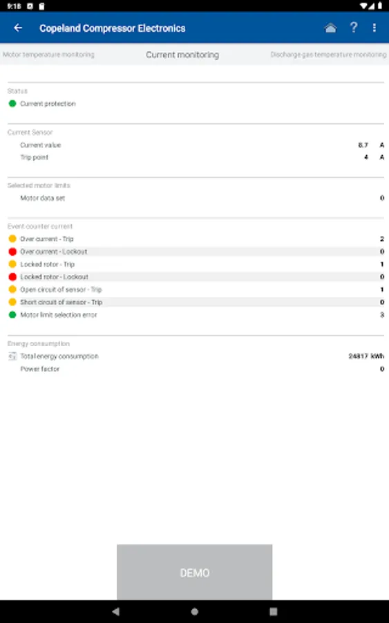 All semi-hermetic compressors featuring Copeland™ compressor electronics technology can be easily connected to the app via USB or Bluetooth. A complete overview of the actual compressor data, historical data or error list can be accessed at a touch of a button.