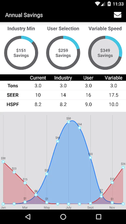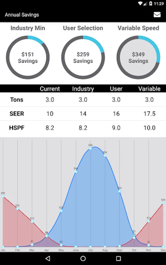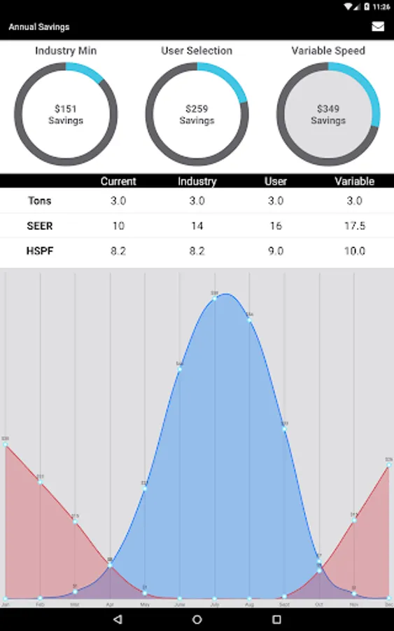 2. After the details of the job are entered into the app, the app generates a professional-looking report that shows annual cost savings of high efficiency systems.