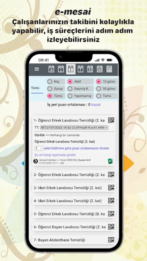 3-) By linking tasks to QR codes, you can enable your employees to complete tasks with QR codes, and you can check whether your employees are on duty thanks to the GPS feature and Device ID features.