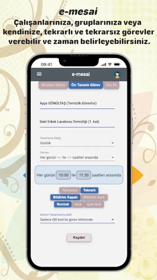 1-) You can assign repetitive or non-repetitive tasks to your employees.