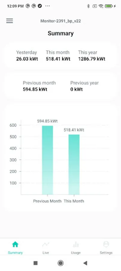 Main purpose of the application is to work in conjunction with hardware device called Energy Meter with is used to collect and analyze electricity consumption of the households. Mobile application connects to the Energy Meter device via BLE protocol and download energy consumption data from it.