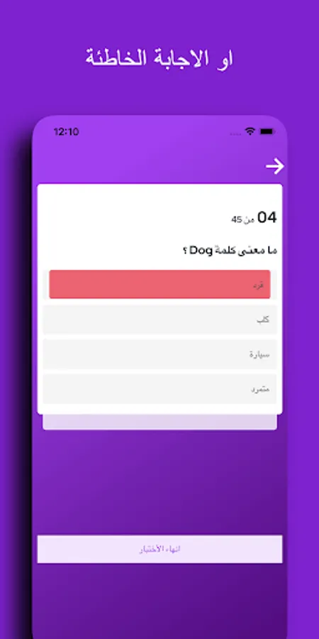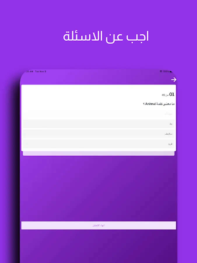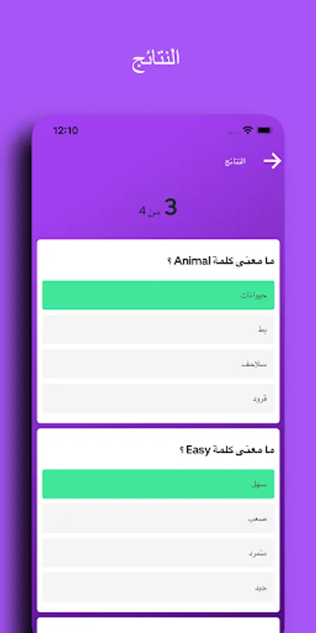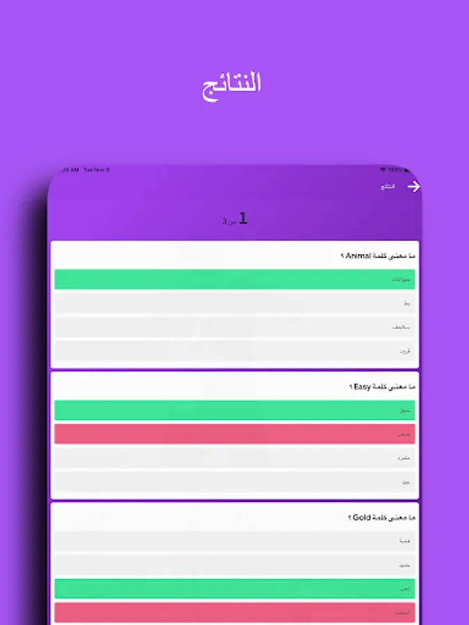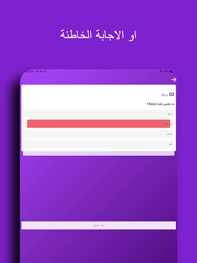 Where you can start a new test and answer the questions posed to you and show the result directly to you to help you master the correct words and the correct meanings.