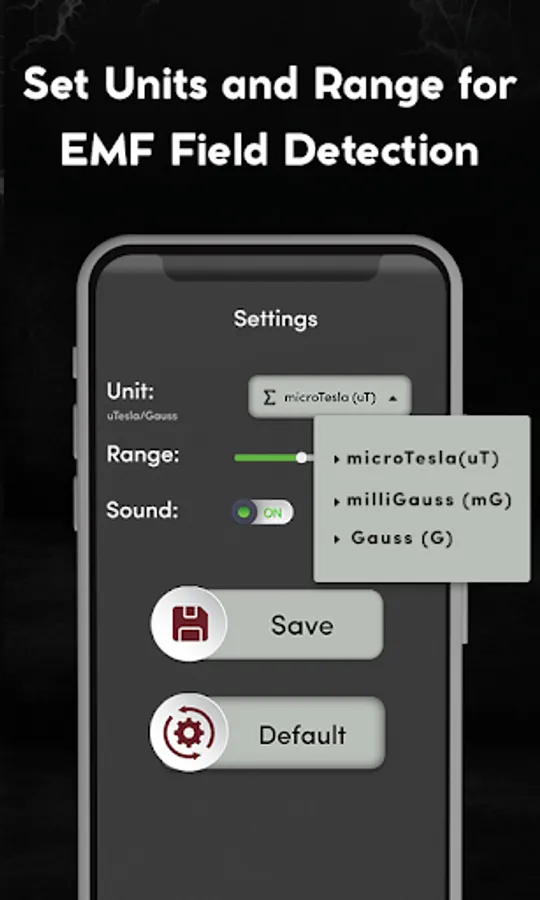 ✔True EMF detector app detects EMF fields in three units, microTesla, Milligauss, and Gauss.