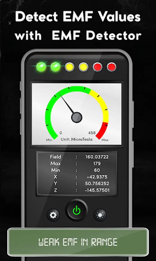 EMF meter android identify weak, high potential EMF and extremely high potential EMF in range.