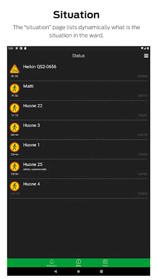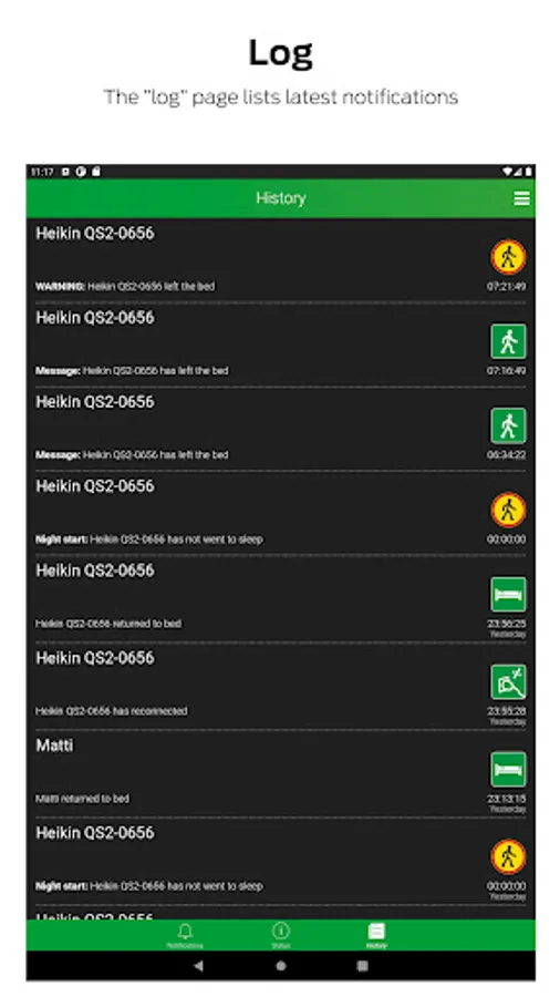 Emfit QS+Care app is for preventing falls in long-term care. It connects with Emfit QS under mattress bed sensors to inform when a resident leaves his/her bed or does not return to it within a preset time.