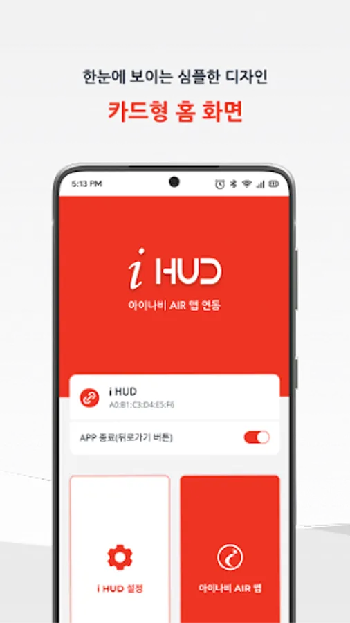 The i HUD (i-HUD) app is always on in the background and connects (interlocks) the i-Navi Air and the dedicated terminal, and both i-Navi Air and i HUD must be installed on the phone for normal operation.