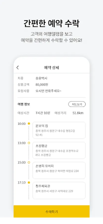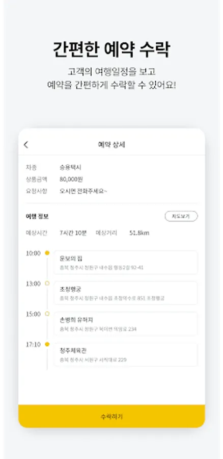 Blackbird T is a taxi reservation service based on the customer's itinerary, and the driver can view the customer's itinerary and accept the reservation. View the schedule, accept reservations and plan your itinerary according to the driver's schedule.