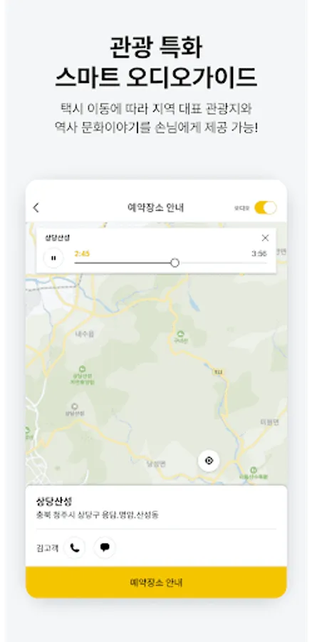 A location-based smart audio guide is played according to the movement of the GPS built into the Blackbird T Driver App. You can listen to the local representative tourist attractions and historical and cultural stories during the boring travel time!