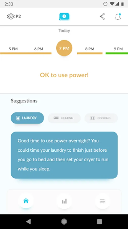 PowerPal helps you as a P2 customer make the best of your power by understanding what you care about (reducing your power bills, using renewable power, or supporting your local community) and then helping you use power at the best times of day to achieve this.
