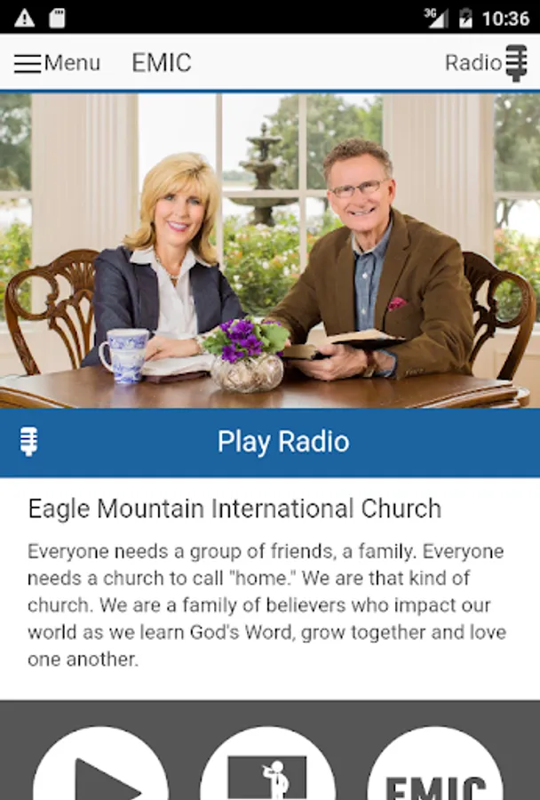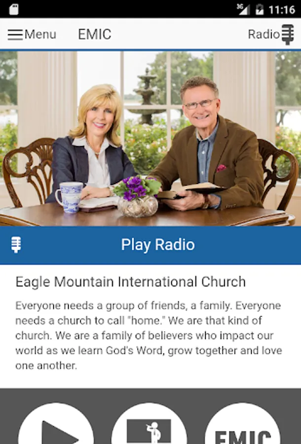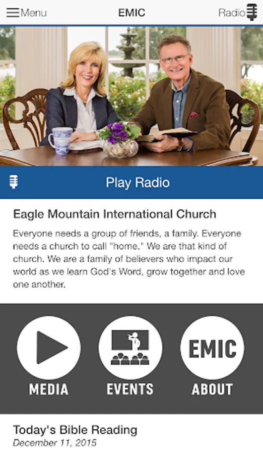 WELCOME HOME to faith, to family, to God. With the official app of Eagle Mountain International Church you can become a part of our family! You will have access to our services, exciting event listings, daily Bible reading plan, the Eagle Mountain Radio Network, as well as encouraging words from Senior Pastors George and Terri Pearsons.