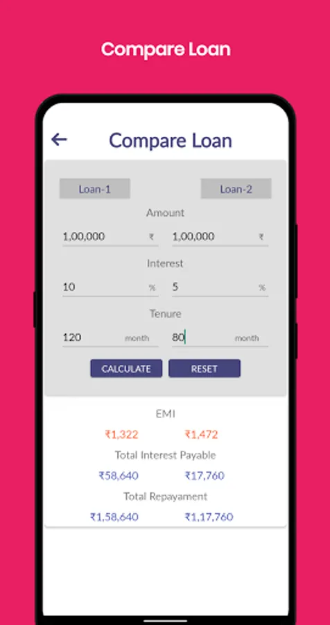 - Easy option available to compare between two loans