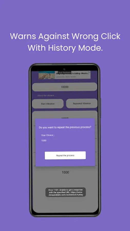 Confirmation text for issues such as accidentally touching the history feature for the possibility to reuse previously used time in the app.