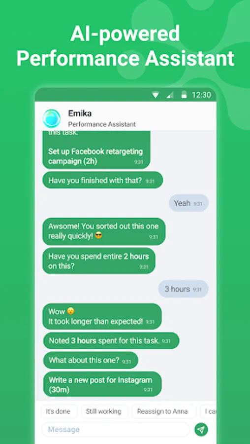Emika is AI-powered performance assistant with task manager in it. Plan your day, see plans of your teammates and reflect on what you have done.