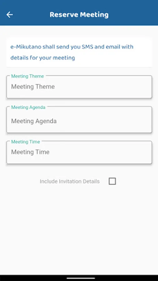 eMikutano offers a room for the individual to reserve a meeting, specifying meeting date and time, number of participants, invited people etc.