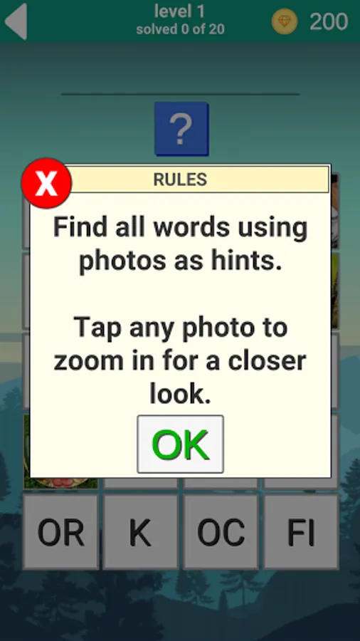 At each level, you have 20 photos available, with which you must guess 20 hidden words to complete the level. Photos are opened one at a time, and you have access to a certain number of photos.as you guess them, others will be available to you. The game is available in 7 languages: English, Russian, Spanish, Italian, Portuguese, German, and French.