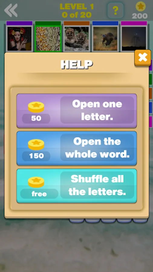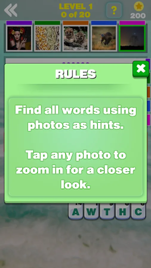 Each level has 20 hidden words that you will have to guess using the picture as a hint.