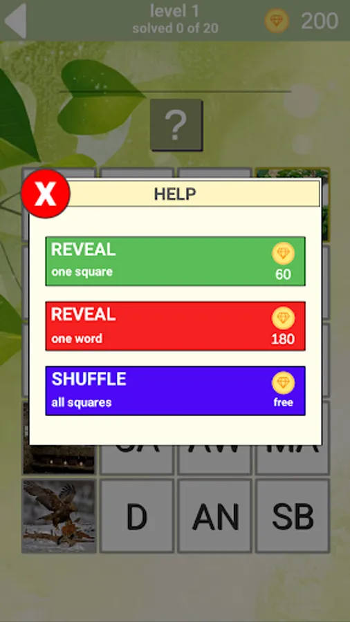 At each level, you have 20 photos available, with which you must guess 20 hidden words to complete the level. Photos are opened one at a time, and you have access to a certain number of photos.as you guess them, others will be available to you. The game is available in 7 languages: English, Russian, Spanish, Italian, Portuguese, German, and French.