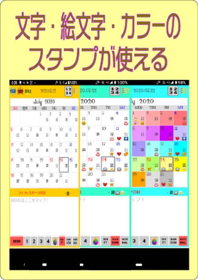 Tap the date at the beginning of the shift → Below the number [Select the same number as the number of the place you want to insert and refer to the number of the second display method button from the upper right, select from the horizontal numbers at the bottom] Tap → Tap your favorite character and emoji stamp at MEMO on light yellow background.