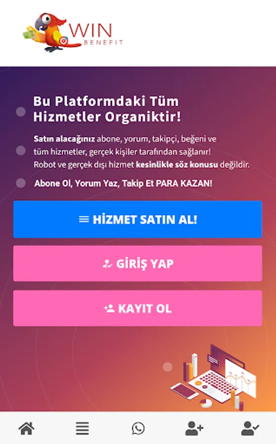It is an application where you can easily and quickly perform operations such as following, liking and commenting in the digital environment. Users can earn money by performing these operations as tasks. The application is easy to use and aims to make your activities in the digital world even easier. In other words, it offers the opportunity to earn money without having to spend time on your social media accounts. Moreover, it works on a secure and reliable platform, so your personal information stays safe. Win Benefit is ideal for anyone looking for an opportunity to earn money online.