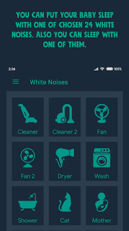 Relaxing Sleep Sounds is developed for your baby and you. You can put to sleep your baby easily with white noises. Therefore, you won’t lose your time with trying to sleep your baby. You can teach animals sounds and names with animal sounds. You can be relaxed with nature sounds. App doesn't need internet and it's only 25mb. You can stop sounds with timer when you want. Relaxing Sleep Sounds includes 24 unique white noises, 18 animal sounds and 27 nature sounds.