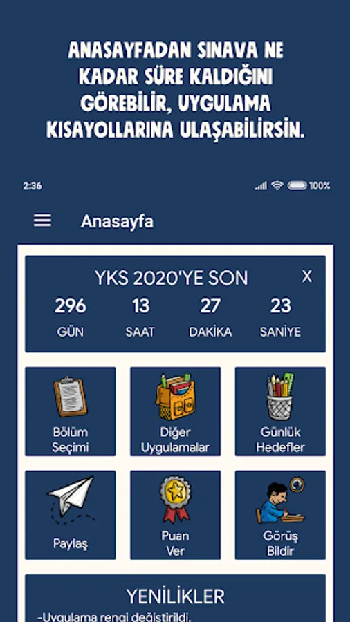 By clicking the "Remaining Time" image on the main screen, you can see the date of the exam and how much time is left for the exam in days, hours, minutes and seconds.