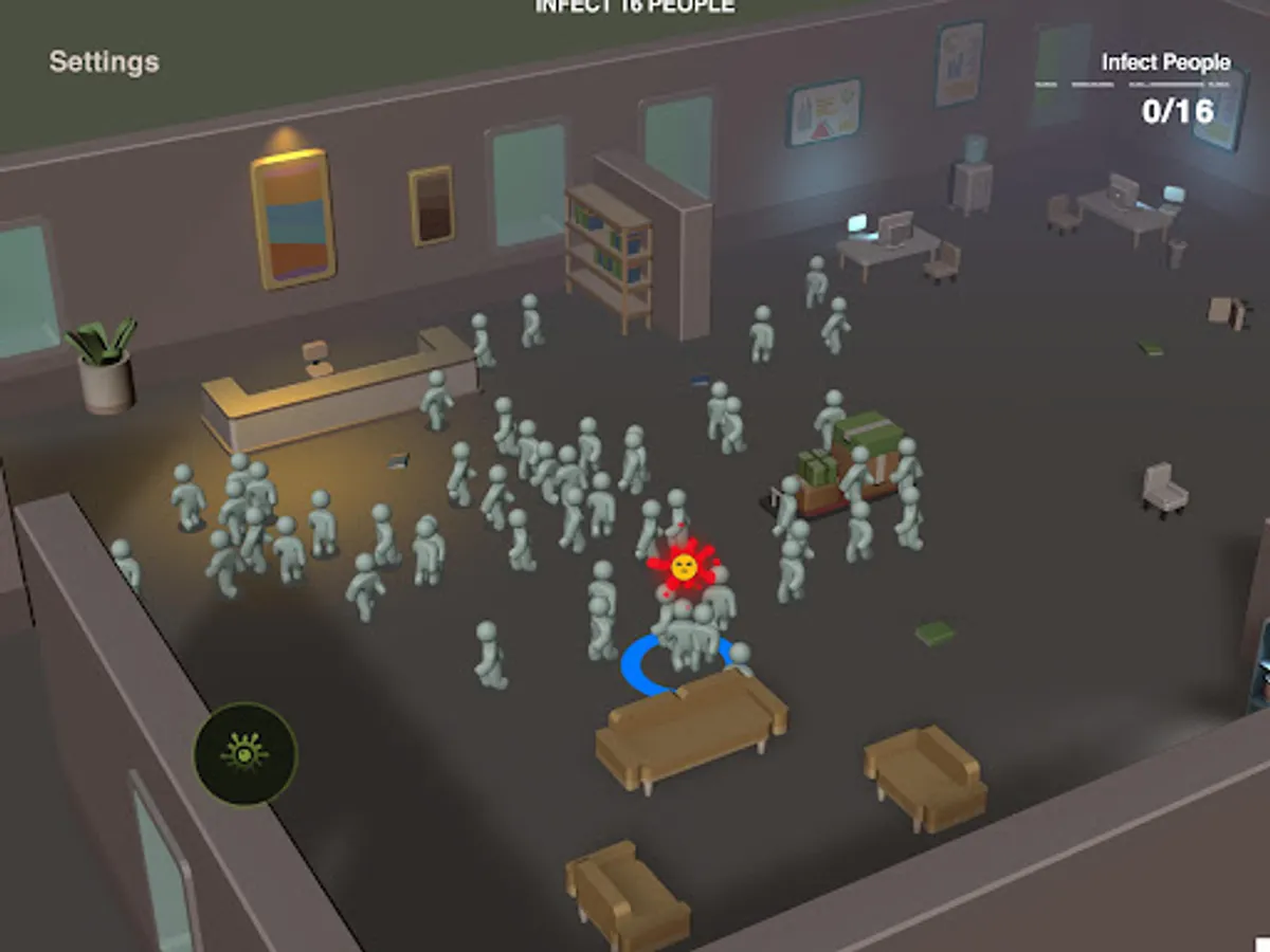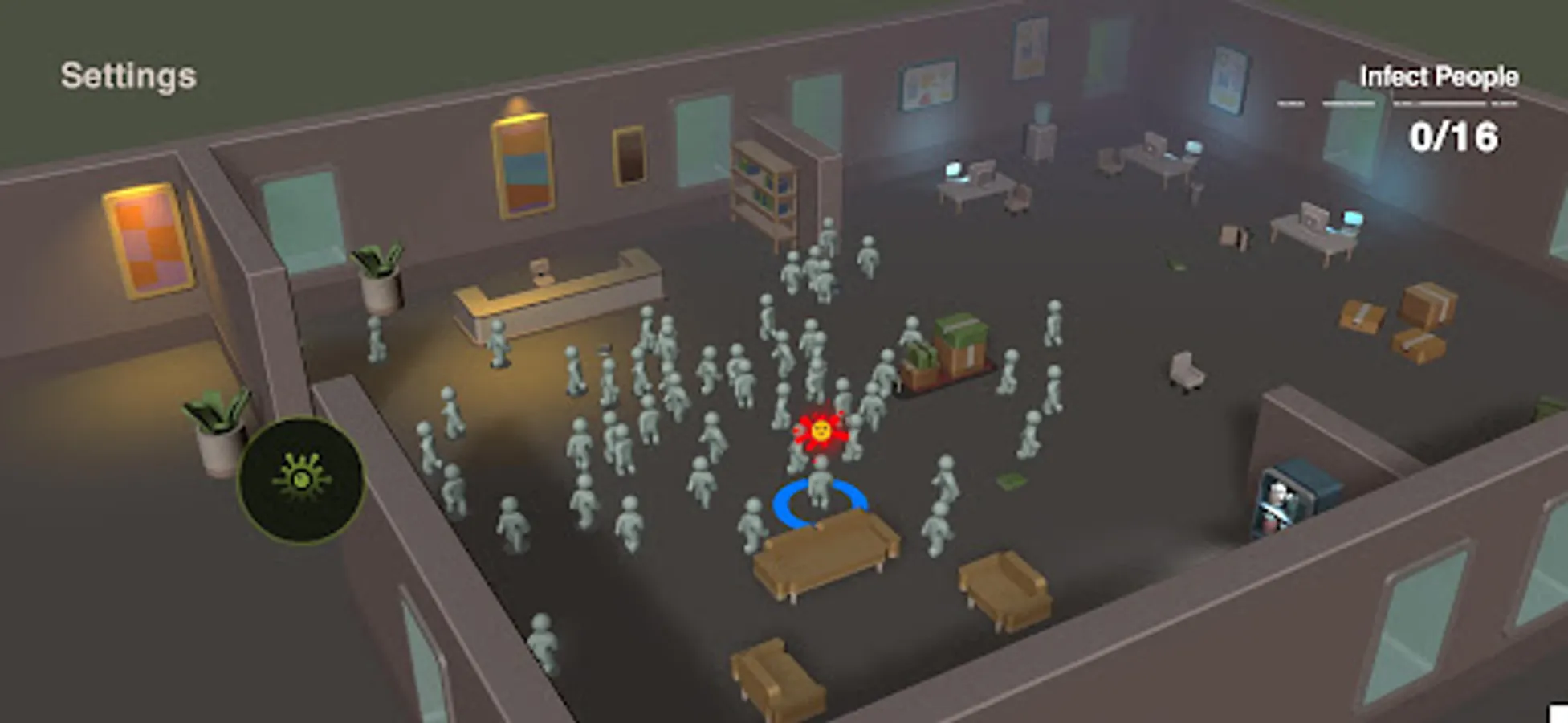Walk through the people, sneeze at the right time and infect as many people as possible with your desease! Have fun!