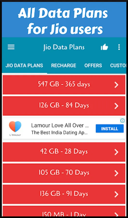 Mobile app free for जियो gives the jio recharge plan instantly along with quick online recharge - data pack app and recharge data plan