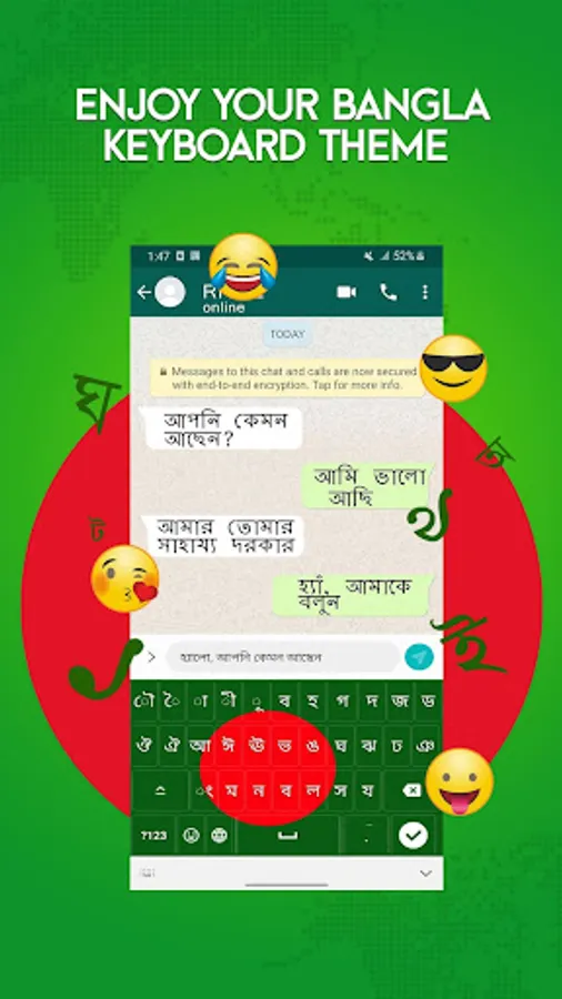 • EMOJIS and Colorful Fonts in this Free Bangla keypad.