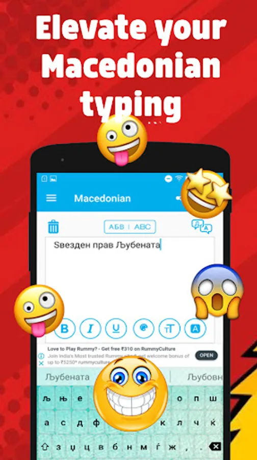 The Macedonian keyboard is a special keyboard for writing in the Macedonian language. It has all the letters and symbols needed, even the unique ones in Macedonian. People in North Macedonia often use it, and it helps them type in their language easily. It's like a special tool that keeps their language alive on their phones. Macedonian language is spoken mostly in north Macedonia. Keyboard in macedonia are simple and easy to use. Macedonian to english translator can easily translate from English to Macedonian and Macedonian to English. The Macedonian keyboard symbol is a testament to the rich linguistic heritage of Macedonia. Macedonian keyboard symbol increase the essence of the Macedonian language, preserving its unique identity through special letters and characters. Macedonian keyboard symbol attracts its users by different stylish backgrounds and colorful themes. Macedonian keyboard for android is a fast keyboard for all android users. Macedonian keyboard 2023 has Macedonian dictionary in it. Macedonian dictionary is very helpful for individuals who wants to improve Macedonian language.