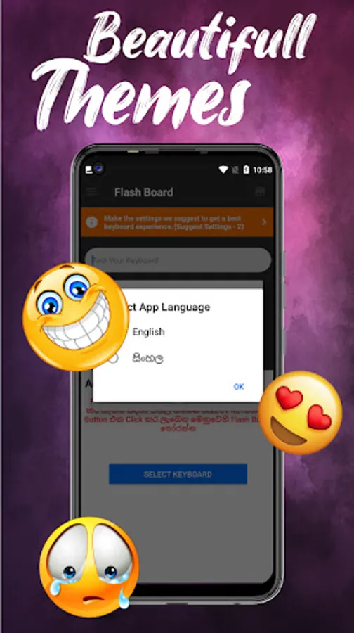 ✔ Sinhala Keypad app lets you express yourself with a vast collection of keyboard themes. Choose which suits the best for you to personalize the typing experience.