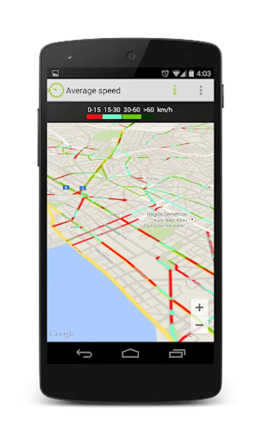 The traffic is monitored based on continuously collected data from taxis that travel in the above mentioned region.