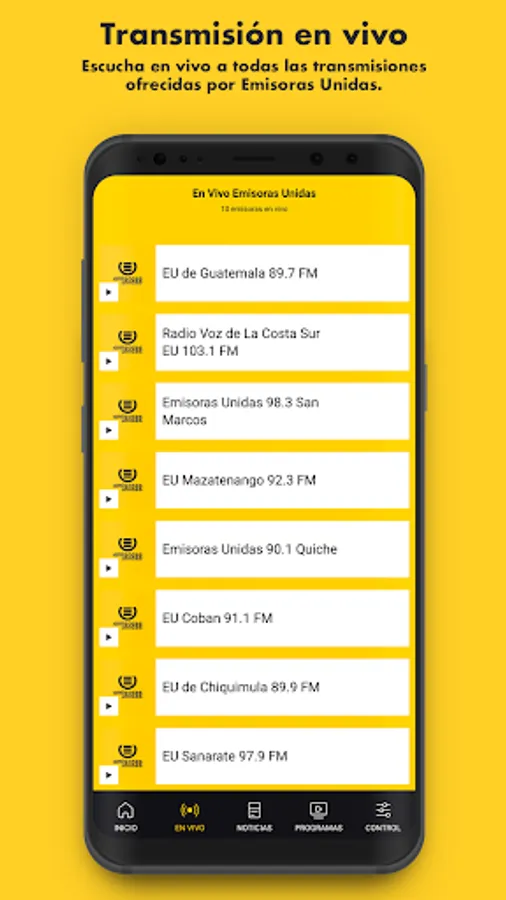 With more than 50 years broadcasting for Guatemala on 89.7 FM and the world from emisorasunidas.com, United Stations offers its application with the latest news, sports and our online just a click away radio. With its frequencies within the country or from capital city of United Stations Radio is the number one national audience. A digital level United Stations is a leader in audience with its millions of users connected from anywhere in the world to its online radio and interacting on social networks.