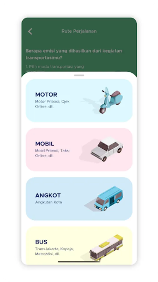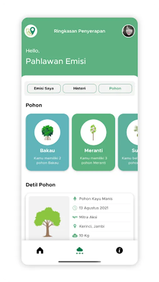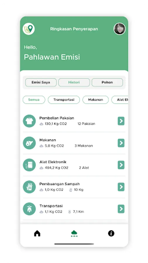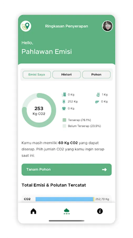 This application will help you to calculate the carbon emissions and pollutants that you emit when you do activities, provide alternative steps to reduce them, and also calculate the need for trees to compensate.