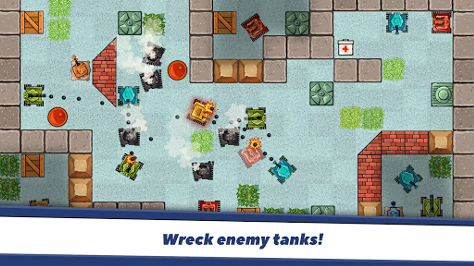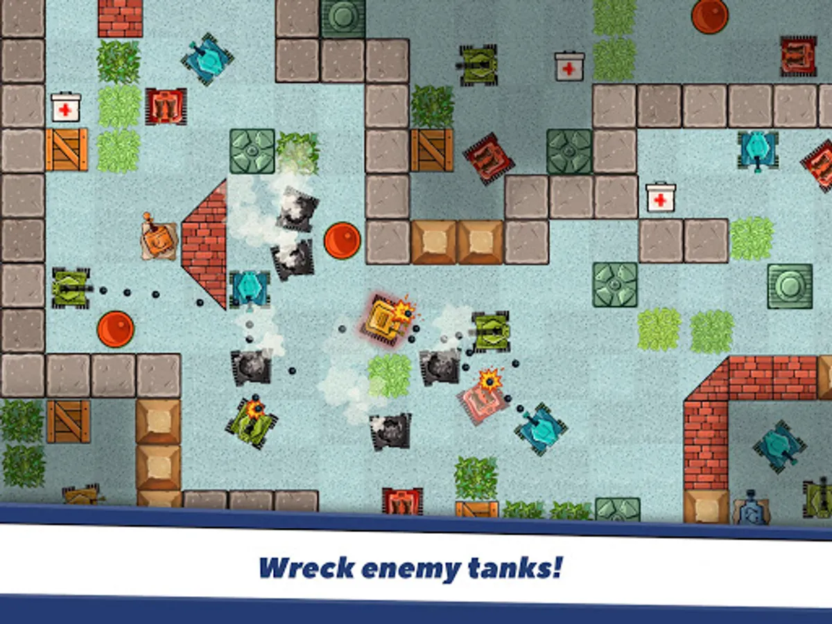Classic top-down 2d tank shooter is finally available on the Google Play with all-new graphics, physics engine, smooth and responsive dual thumb controls. Prepare to unleash a war! Smash enemy tanks, destroy bosses, find secret rooms full of bonuses.