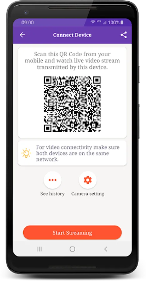Using this feature your device broadcast live video feed to other devices. You can connect multiple devices with this live feed.