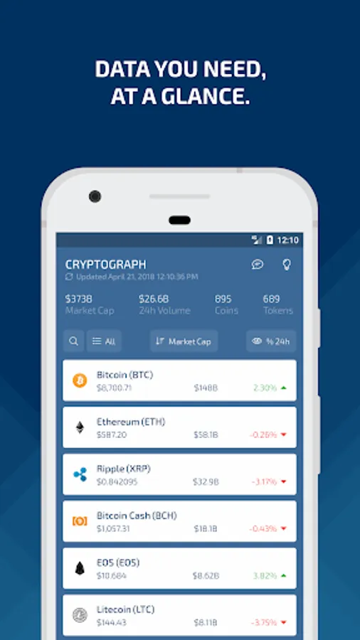 We believe that data is beautiful. That's why besides accuracy we focussed heavily on design. We designed Cryptograph from the ground up, to deliver you an app that looks beautiful while providing you the latest data on the crypto market.