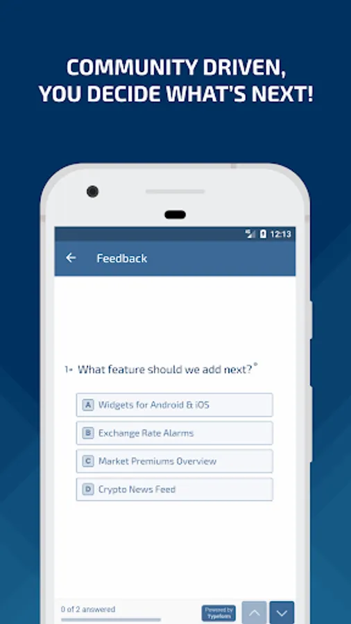 Cryptograph is for and by the crypto community. As fellow enthusiasts, we want to know what features help you stay on top of the market and help you make the best trades. Email us your ideas, or answer the survey in the Cryptograph app!