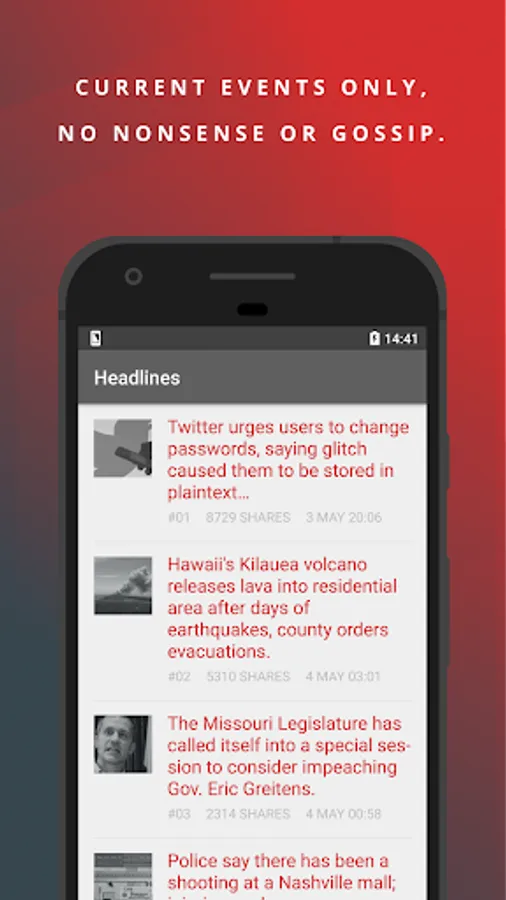 Thanks to Headlines you get to see real news only, in a destracion free environment. Get rid of fake news, gossip and nonsense: download Headlines for free today!