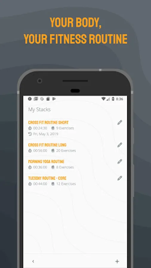 CrossFit, Yoga, Cardio... your body, your fitness, your workout routine! Repstack allows you to create and save custom workout routines that work for you. Whether you're looking to train for strength, agility or mindfulness: Repstack is your go-to solution for personal workout routines.