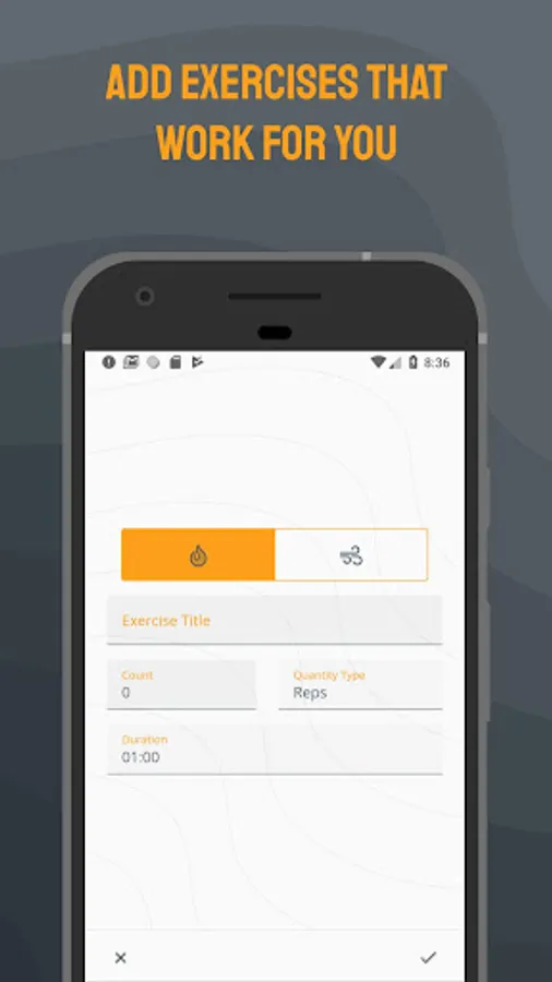 Create and save custom workouts to realize your personal fitness goals. Use Repstack's visual and sound guided workout mode to get the most out of your fitness routine!
