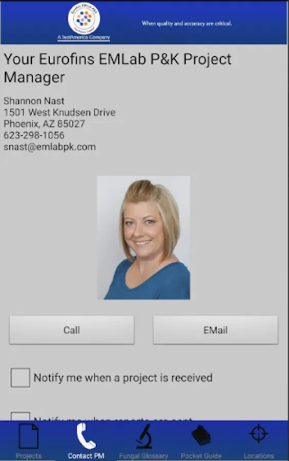 • Call your Eurofins EMLab P&K Project Manager (PM) with one touch