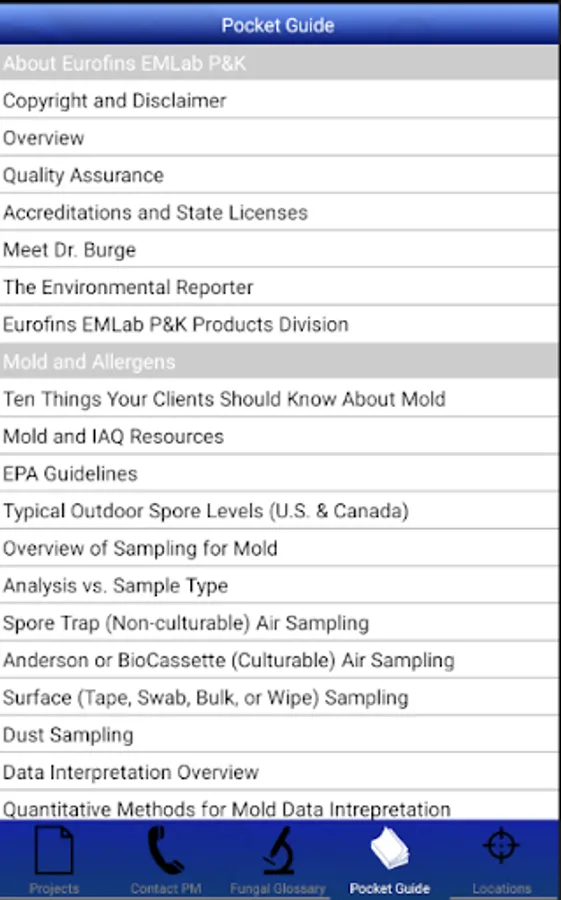 • Access the Eurofins EMLab P&K Pocket Guide directly in the app