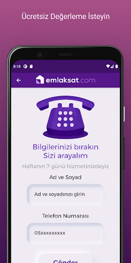 If you want to sell your house with Emlaksat, download our application now and fill out the necessary form by clicking on the "Request Free Valuation" button. We will contact you as soon as possible and start the process. After the authorization and key delivery, all you have to do is to enjoy the privilege of our mobile application with the instant tracking system.