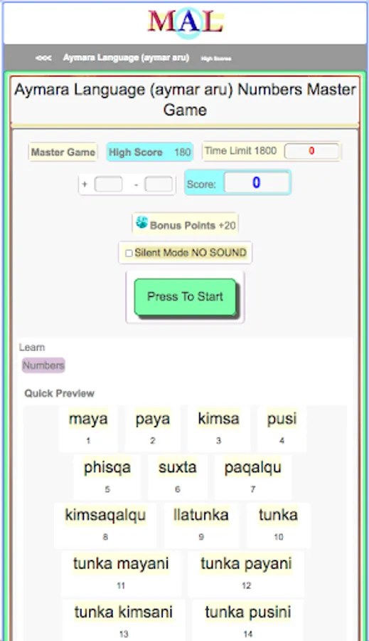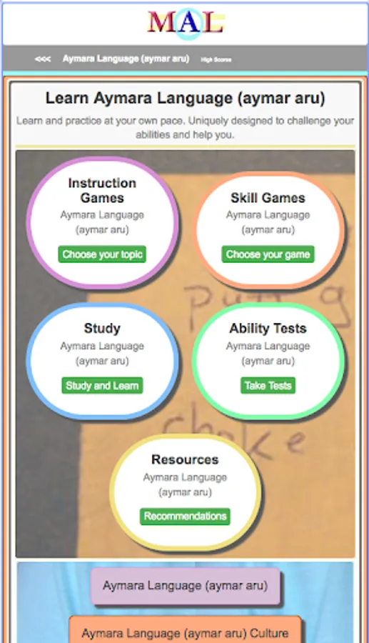 Play Aymara Learning Games, Study and Learn with online Flash cards, Take Aymara Tests