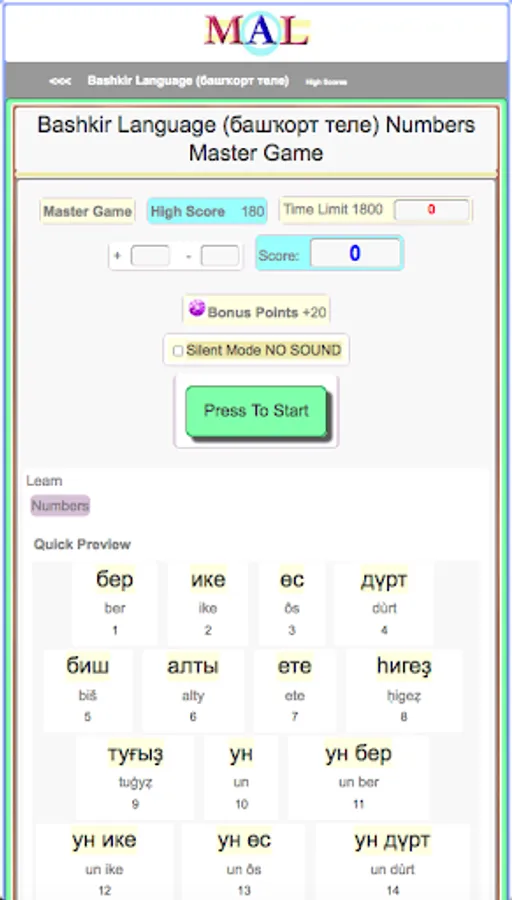 Play Bashkir Learning Games, Study and Learn with online Flash cards, Take Bashkir Tests