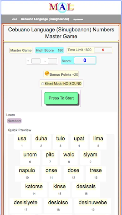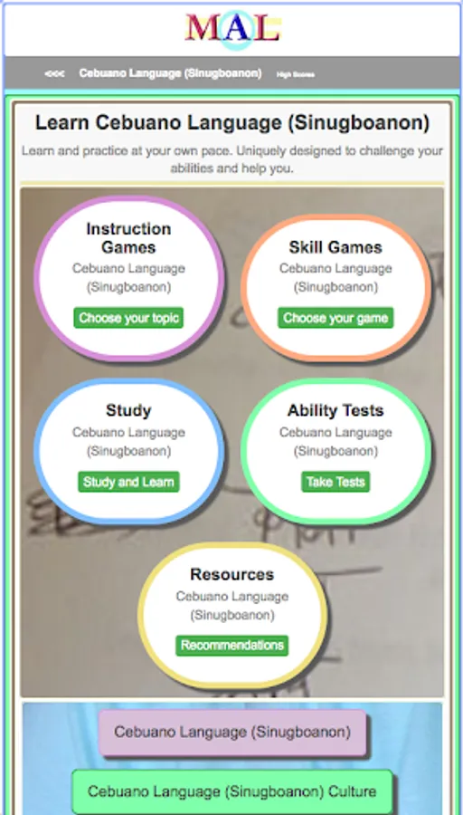 Play Cebuano Learning Games, Study and Learn with online Flash cards, Take Cebuano Tests