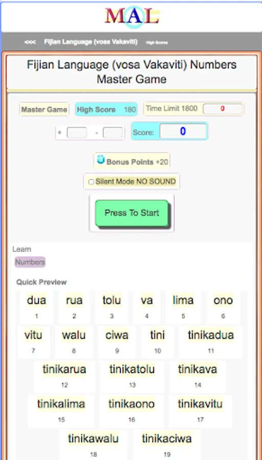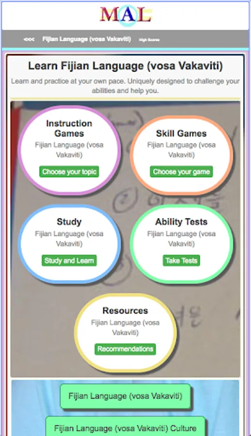 Play Fijian Learning Games, Study and Learn with online Flash cards, Take Fijian Tests