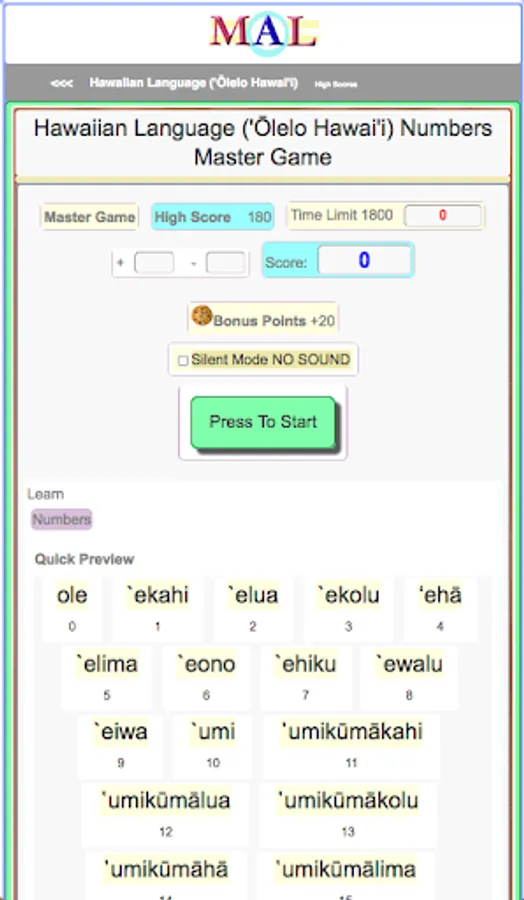 Play Hawaiian Learning Games, Study and Learn with online Flash cards, Take Hawaiian Tests