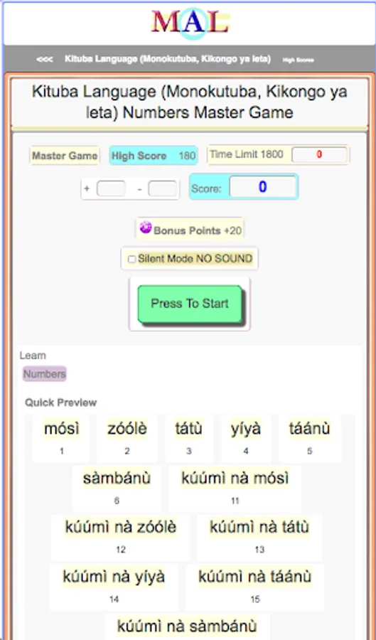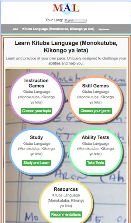 Play Kituba Learning Games, Study and Learn with online Flash cards, Take Kituba Tests